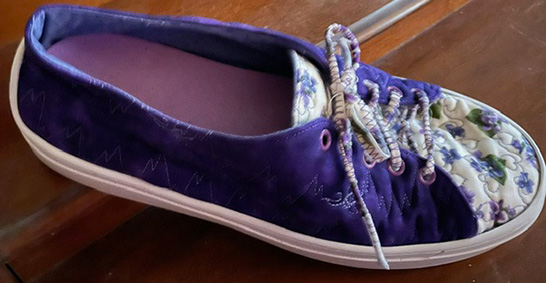 Bring your own funky fabric that you will embellish with decorative stitches, embroidery designs, or show off your free motion skills, the possibilities are ENDLESS! Then, learn to assemble and finish your shoes using a specialty thread and eyelets included in your kit. Once assembled, lace them up with a pair of shoelaces and slip them on to test fit and comfort. Take part in a one-of-a-kind designer showcase, or should we say shoecase? All joking aside, these are a snap to create and add an entirely new dimension to your wardrobe. This class is the perfect opportunity for you to express your creativity, learn new skills, and create unique and comfortable footwear that shows your personal style.