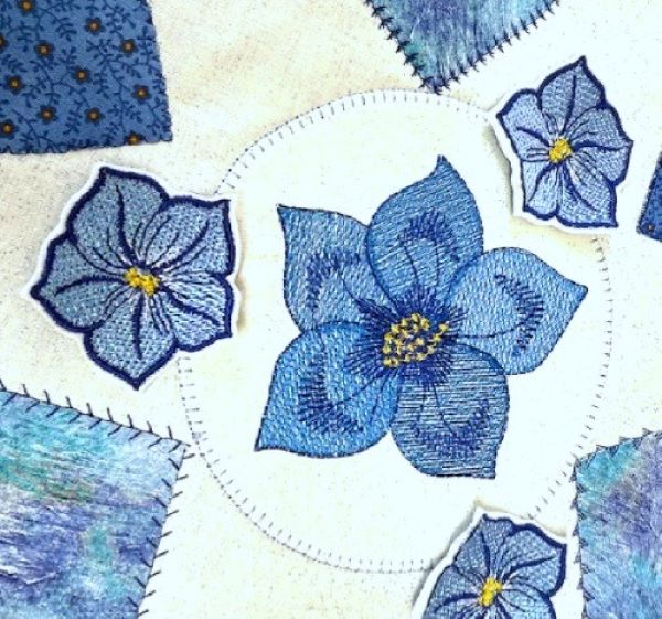 Using Mylar for embroidery designs solves the frustration of working with metallic threads, get that look without all the issues of thread breaking and shredding for a shimmering finish. We will explore different methods of applique: invisible applique, using decorative stitches, mastering curves and corners, buttonhole stitch options, and the best tools on the market today for successful applique. You’ll complete this project with a technique for the border that gives it a scalloped edge, without having to use a specialty ruler. Together, we’ll have fun crafting a unique Mylar flower and surrounding it with appliqué shapes using both traditional and creative new methods.