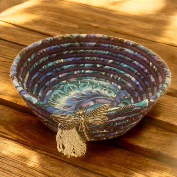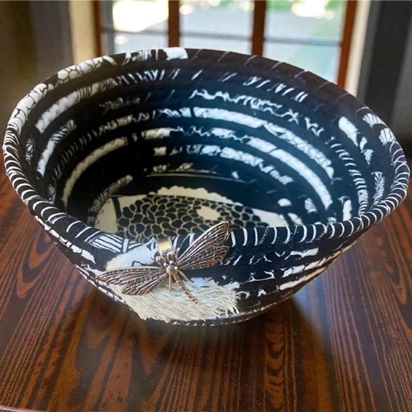Not all bowls are created equal. Learn how to wrap fabric strips and sew coordinated wrapped clothesline cords together to shape the perfect striped bowl. You’ll learn how to add a firm appliqué center to the inside of your one-of-a-kind bowl and finish it with a dragonfly pendant. These bowls are multipurpose and a perfect handmade gift in three hours.