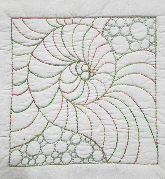 Get your fill. . . of border stitches that is! No more under-quilted borders and sashing. Discover time saving tools and learn some quilting tips that will result in a professional look. Beginners or experienced quilters will benefit from these free motion exercises. As a bonus, you will get the opportunity to play with a variety of distinct types and weights of thread for a unique look.