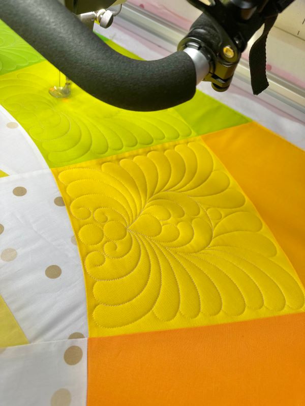 Feathers: the quintessential quilt motif. Whether you are just starting or already comfortable with basic free-motion, designer Sarah Thomas will guide you through feathers and quilty frills in this fantastic workshop. With a variety of techniques for creating feather motifs, experiment both drawing and working on the machine to determine your personal feather style. Learn how to achieve perfect continuous formal feathers, plus how to use rulers, stencils, and other items to fit and form dazzling featherwork on your quilt tops. From blocks and borders to custom motifs, this class will build skills for stitching numerous plume types and spine variations with the quilting confidence to create your own unique feather designs.