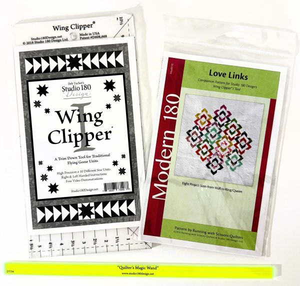 Material fee includes: Love Links Quilt Pattern, Wing Clipper 1 Ruler, Quilter's Magic Wand, Frixion Pen