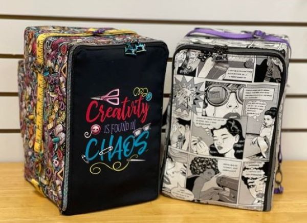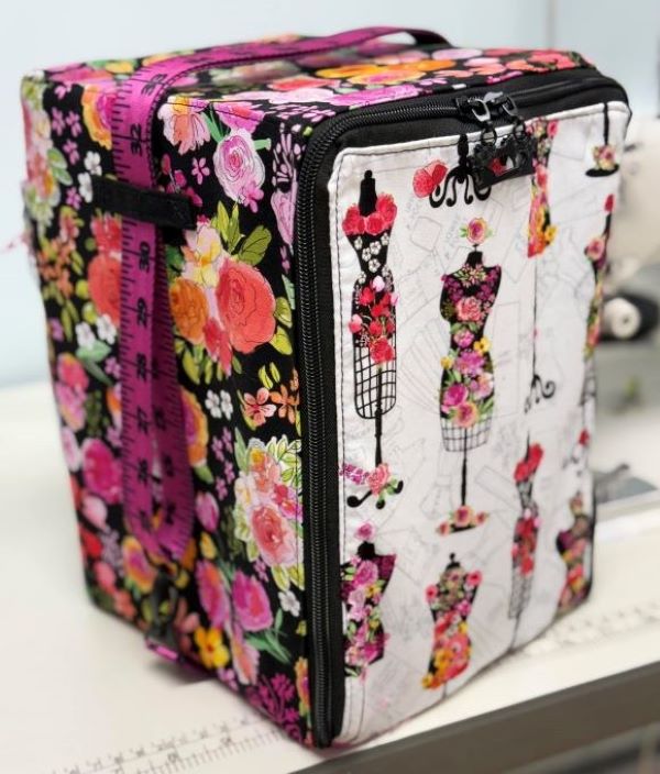 "Everything But the Sewing Machine" Tote is the perfect solution to organize all your sewing needs! This case is a must-have if you take sewing classes, like to sew and travel or attend expos where you need to bring everything, because who would not bring their whole dang sewing room along if they could? Now you can!!! All your stuff can now be tucked away in an organized (or not so organized) fashion in the 5-drawer case with an adjustable strap to carry in your hand, on your shoulder, or not carry it at all by using the trolley sleeve! Between all that and the super handy mesh pockets, I think we have thought of everything!!! Well, everything but the machine!