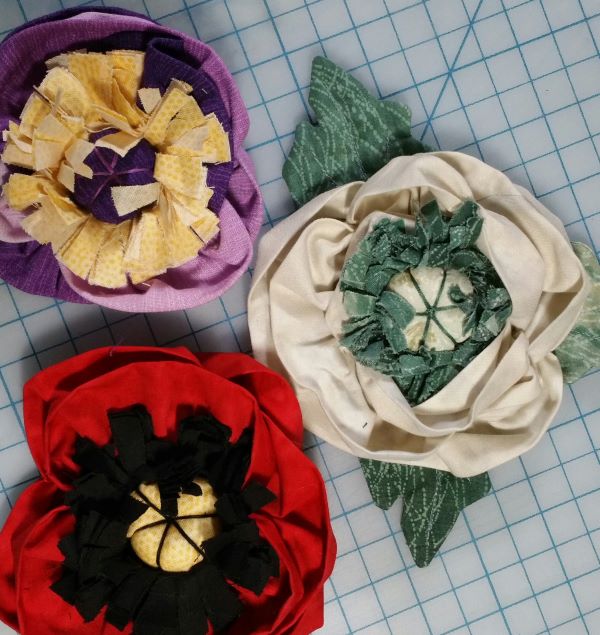 Learn the art of making dimensional flowers—from Big and Bold to small and delicate. What will you embellish? A quilt? A hat? A garment? wristband? Demonstrations and directions for each step will help you create in and out of the classroom. Learn how to make both attached flowers and free-standing flowers. And, leaves, we love leaves, folded, stitched and turned, bonded and double sided. You will also receive samples of ready-made leaves of different types. And, let’s not forget what a bit of colored pencil enhancement can do for both petals and leaves. Let’s see how many we can complete in class. Oh, you didn’t completely finish everything in the class handout, but you saw the demos for each one? Finish up at home, send Jill a picture and she’ll send you a bonus pattern.