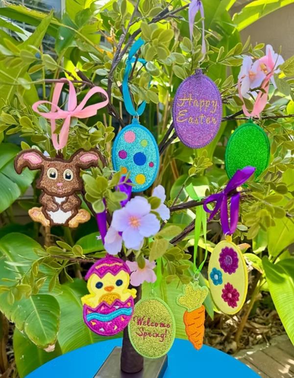 Make these adorable Easter Charms completely in the hoop on your embroidery machine! In class we will complete at least two charms (can be used an ornament, bookmark, key fob, or coaster) with a total of 8 different design files included in the kit to make more at home.