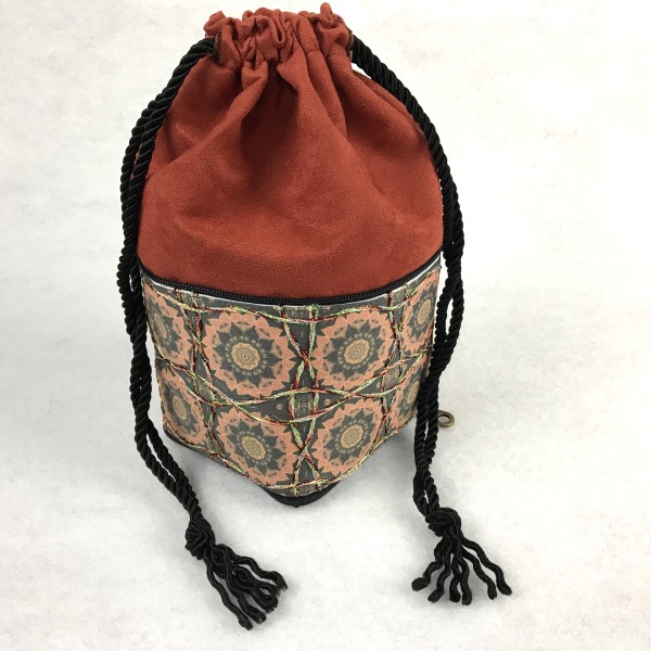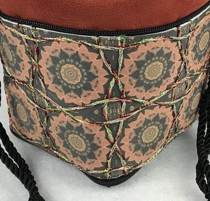 Materials fee includes: Precut fabric, Kaleidoscope design to embellishment, stabilizer, zipper for closure, zipper for trim, draw string, pattern