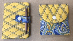 Tired of digging through your purse every time you need something? Get organized with these handy purse accessories! This notebook measures 4.5 by 3.5 inches, fits easily in your purse, and is completely done in the embroidery hoop. There is even a place to hold your pen! The matching purse pouch is a handy little “wallet” that keeps small items like business cards, emery boards, clippers, and more neatly arranged inside your purse. What are you waiting for? Sign up today and get that purse organized!