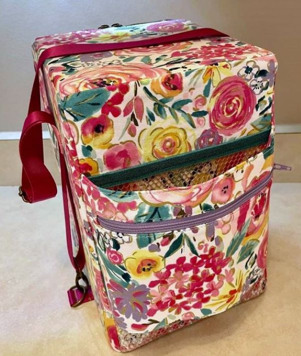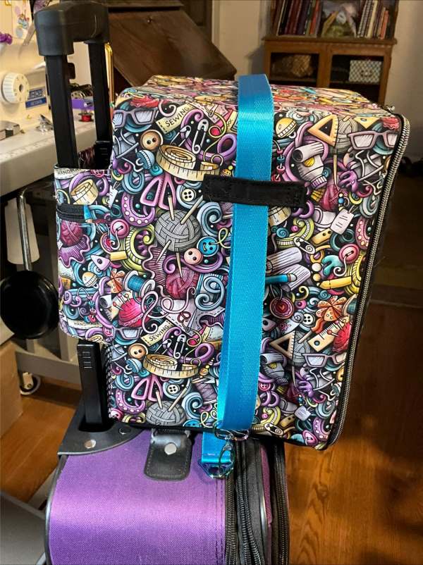"Everything But the Sewing Machine" Tote is the perfect solution to organize all your sewing needs! This case is a must-have if you take sewing classes, like to sew and travel or attend expos where you need to bring everything, because who would not bring their whole dang sewing room along if they could? Now you can!!! All your stuff can now be tucked away in an organized (or not so organized) fashion in the 5-drawer case with an adjustable strap to carry in your hand, on your shoulder, or not carry it at all by using the trolley sleeve! Between all that and the super handy mesh pockets, I think we have thought of everything!!! Well, everything but the machine!