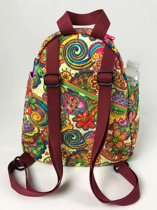 Oval Shaped Backpack with deep gusset and multi pockets (both inside and out) for organizing & beverage. There's even a secret zipper pocket for mad money or extra key to the house! Adjustable strap to carry as backpack or choose the hand held strap. Bring your own fabric. A variety of zipper colors and webbing included in the kit.
