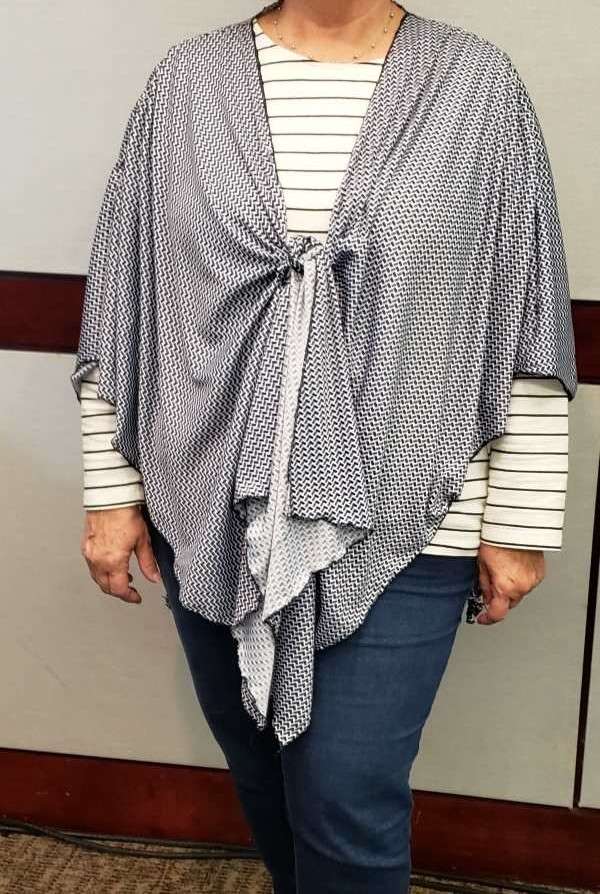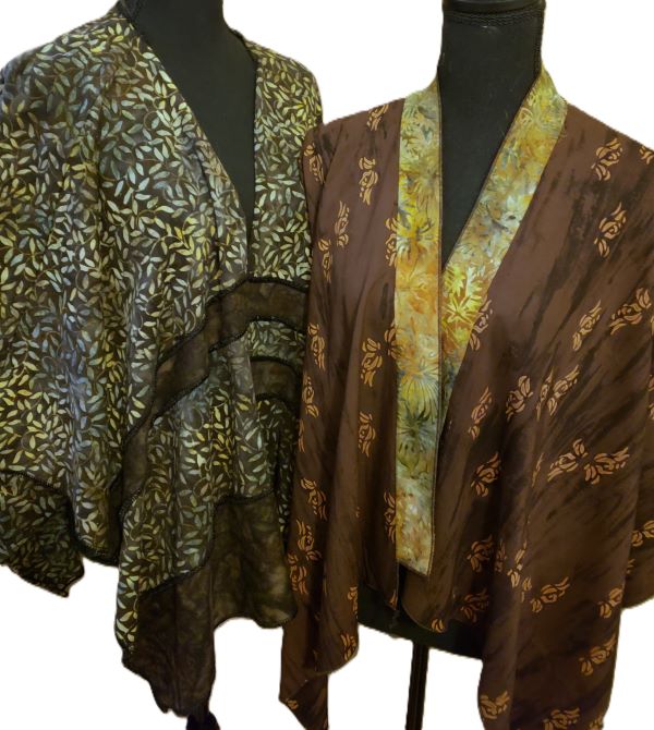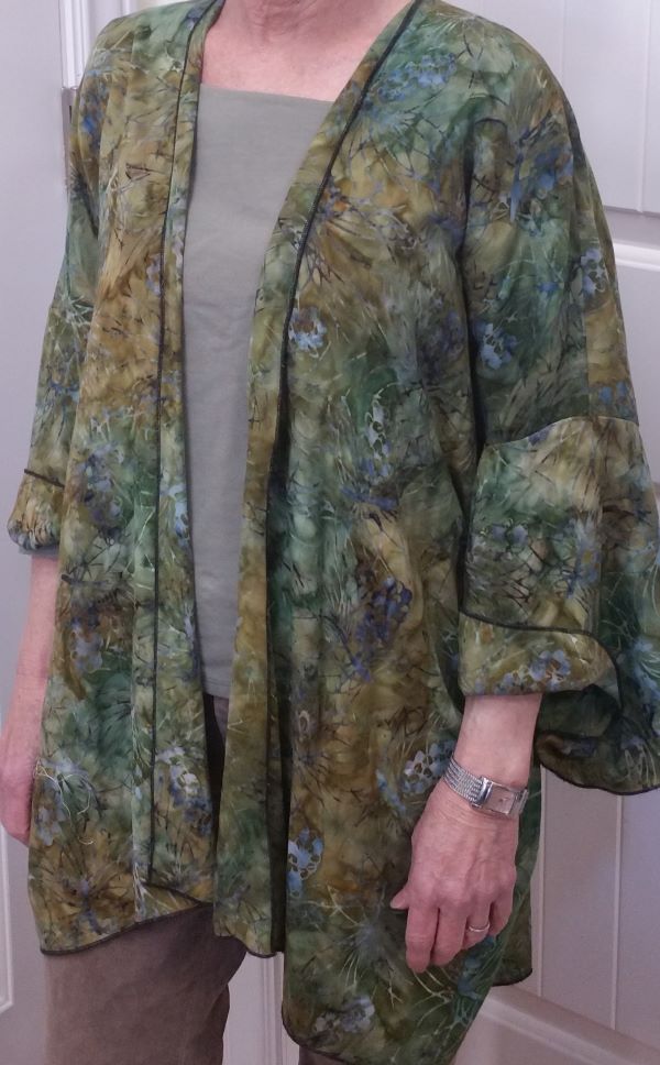Yes, you can design your jacket wardrobe and do so without any unpleasant measurements. We only need shoulders, neck, and desired length. We'll start with a basic kimono style. Then, discuss a few possible tweaks while fitting and onward to changes and additions, in other words, Style. Perhaps add a back yoke or a front band, tapered sleeves, vents or cuffs, decorative panels, and various collar styles. Leave off the sleeves and create a vest. Face the fronts for a fold-back collar. Make a vee or rounded neckline and add a tie or button closure. Play your way to a great jacket wardrobe. Questions are welcome. Includes a Trunk show to inspire—plus a worksheet.