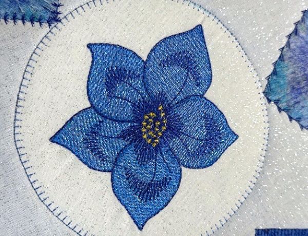 Using Mylar for embroidery designs solves the frustration of working with metallic threads, get that look without all the issues of thread breaking and shredding for a shimmering finish. We will explore different methods of applique: invisible applique, using decorative stitches, mastering curves and corners, buttonhole stitch options, and the best tools on the market today for successful applique. You’ll complete this project with a technique for the border that gives it a scalloped edge, without having to use a specialty ruler. Together, we’ll have fun crafting a unique Mylar flower and surrounding it with appliqué shapes using both traditional and creative new methods.