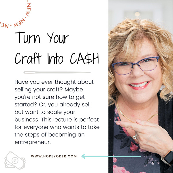 Have you ever thought about selling your craft? Maybe you’re not sure how to get started? Or you already sell but want to scale your business. This lecture is perfect for everyone who wants to take the steps to becoming an entrepreneur. Hope has helped countless people turn their craft into cash and she is looking forward to helping you! Product ideas, pricing, time management, networking and social media will be discussed. Turn your craft into CA$H now!
